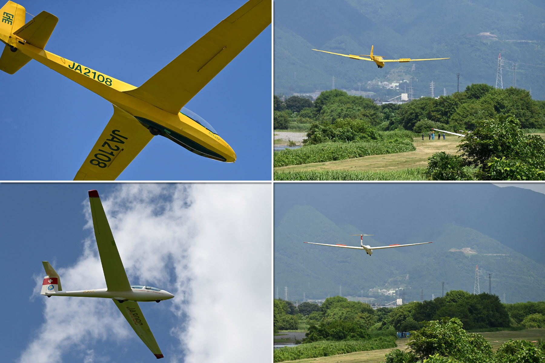 その後も好条件が続き、20分制限をかけた中、ゲストフライト2発 (同志社4年・森さん両親) を含めて 16発飛んで 7発が超過フライトとなり、17:02 最終着陸、半日運航で 20発でした。