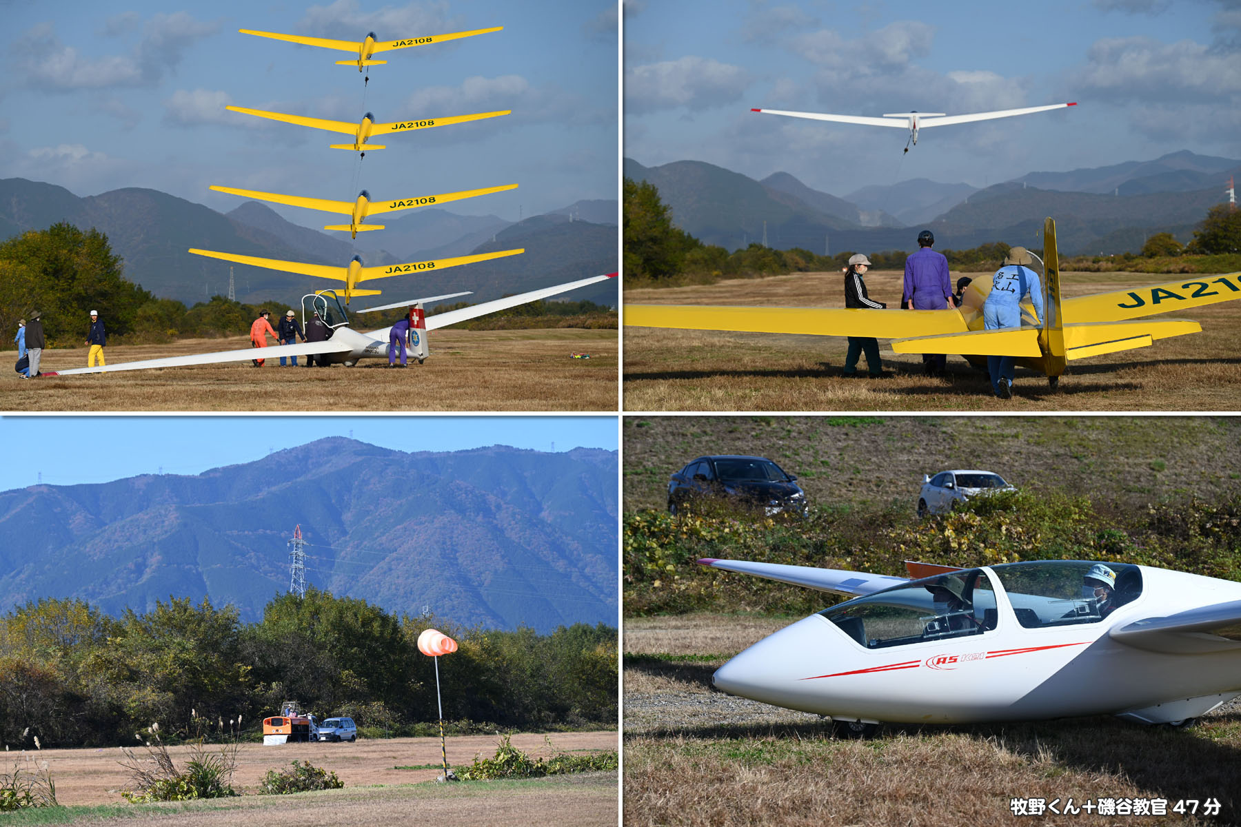南ピスト正対微風、雲が覆っていましたが徐々に晴れ、JA2108、JA2380/阪大ASK21 の2 機体制、安定した空は滞空が望めずバッタの連続でした。
