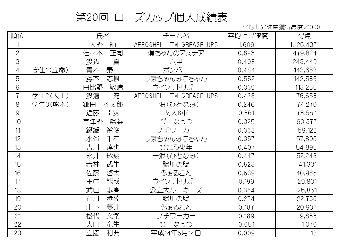 20回ローズカップ・個人成績 20回ローズカップ・チーム成績