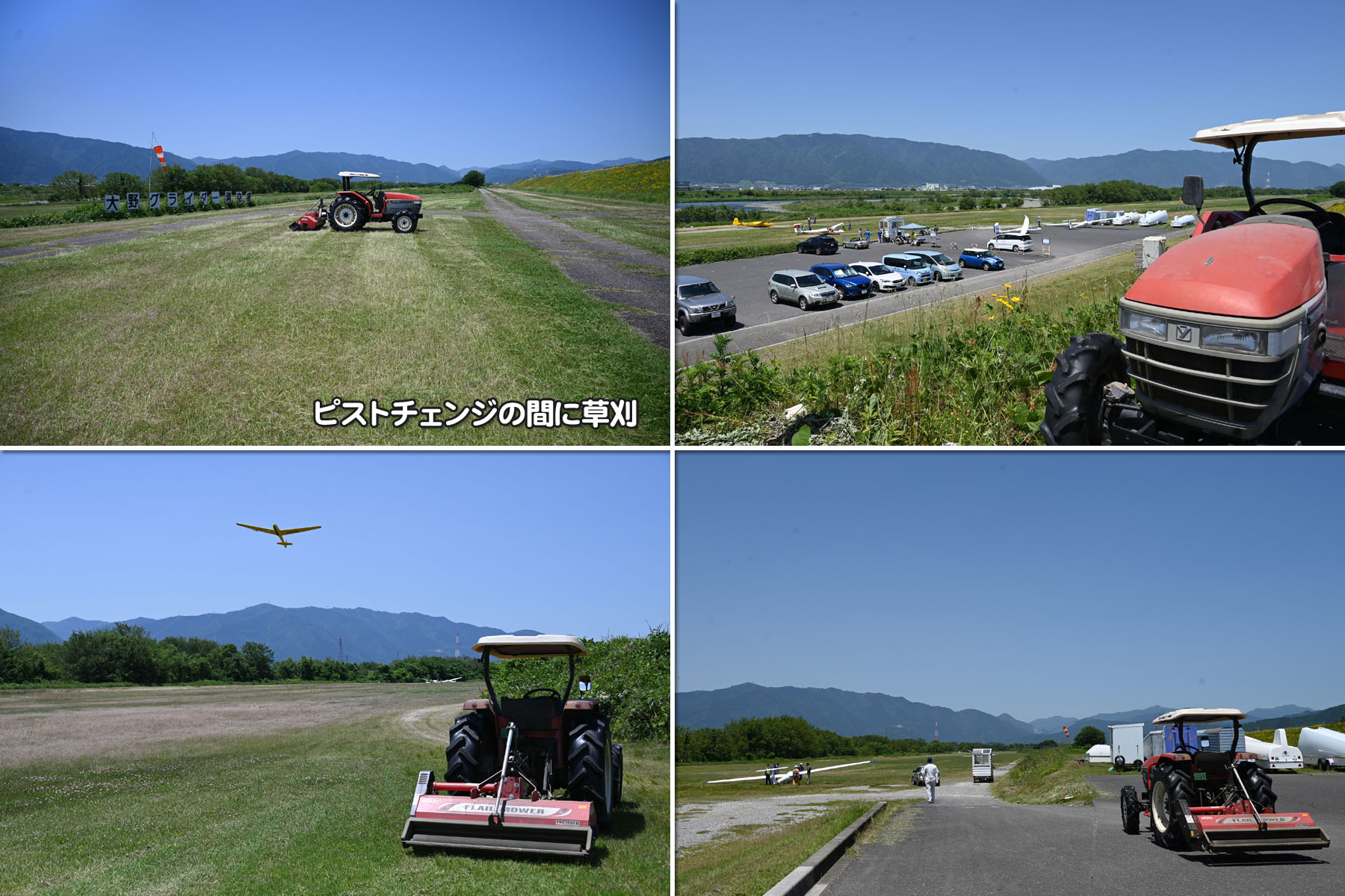 10時前に南風に変り川上へピストチェンジ。この間に ASK23/JA2535 を組立て、川上へ陸送。川下の着陸帯が空いたので草刈民代トラクターが出動。草が延び過ぎた場所を綺麗にしてくれました。