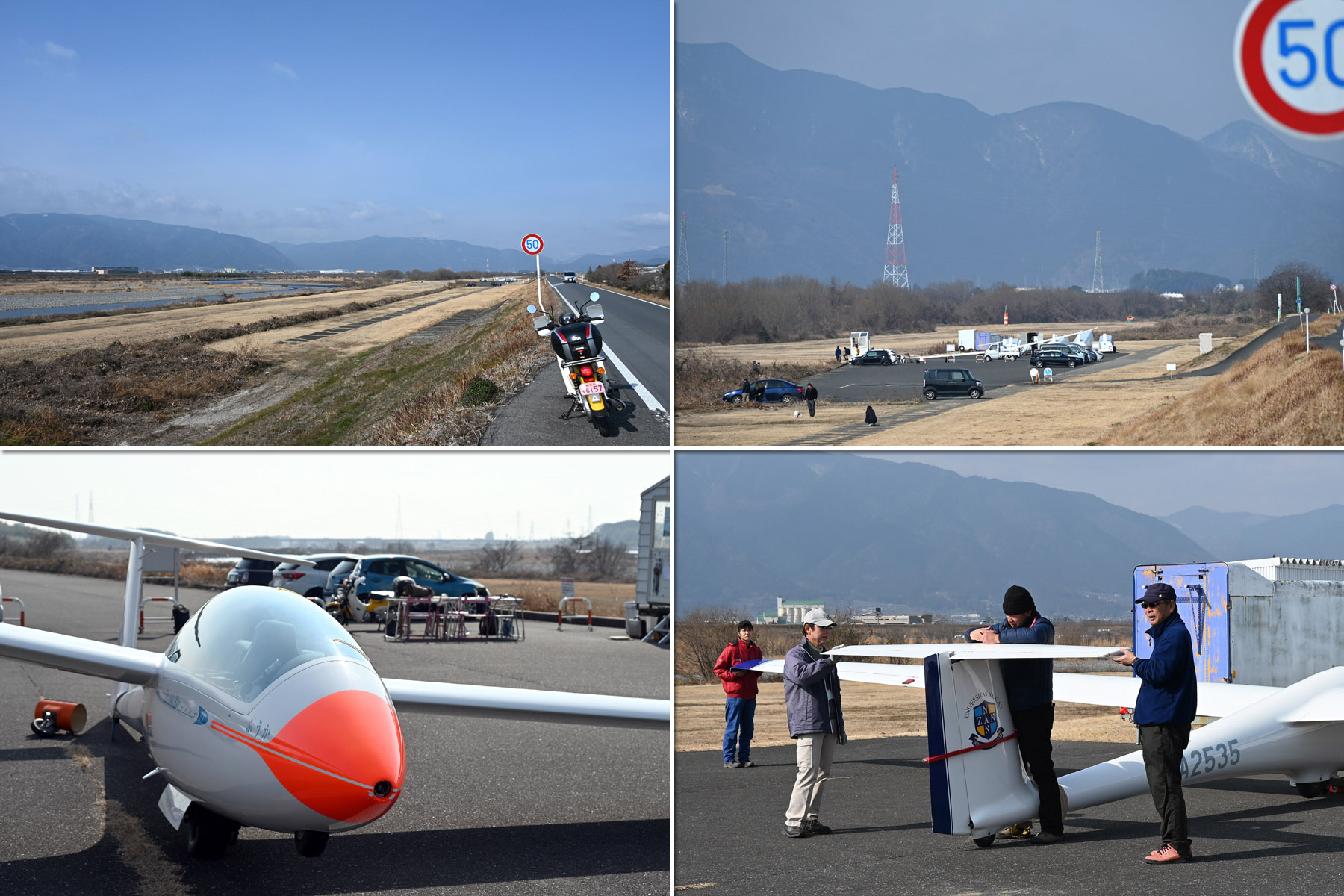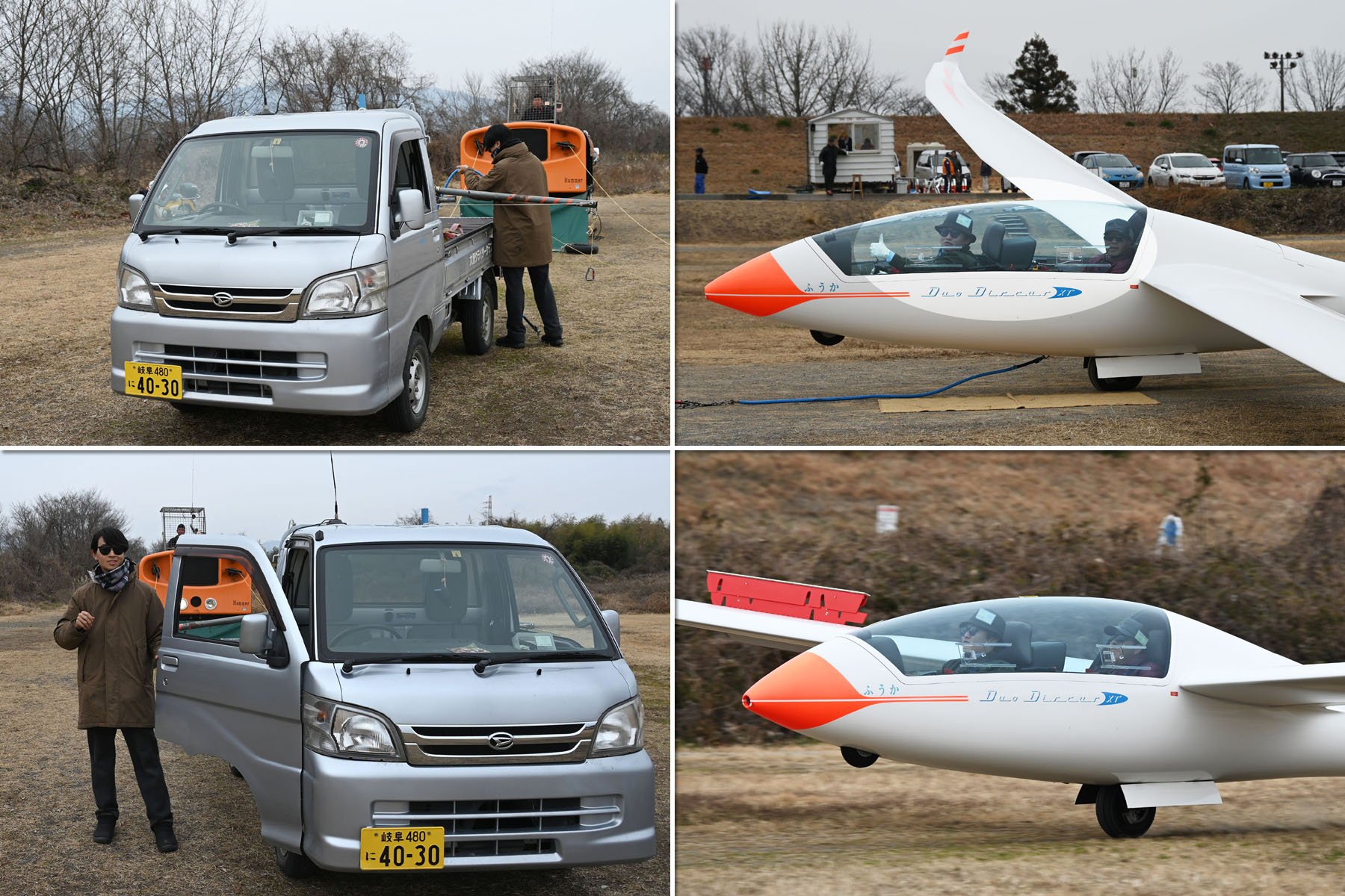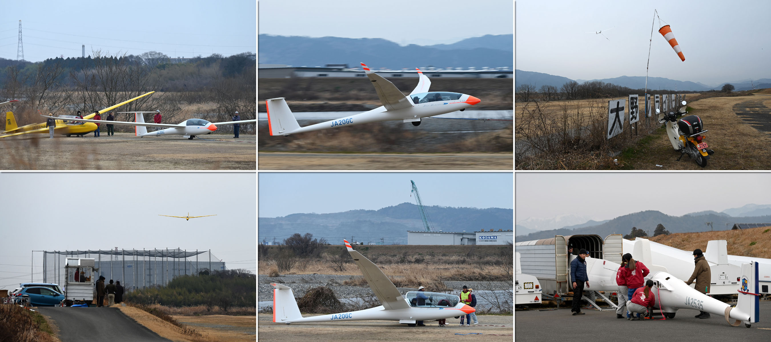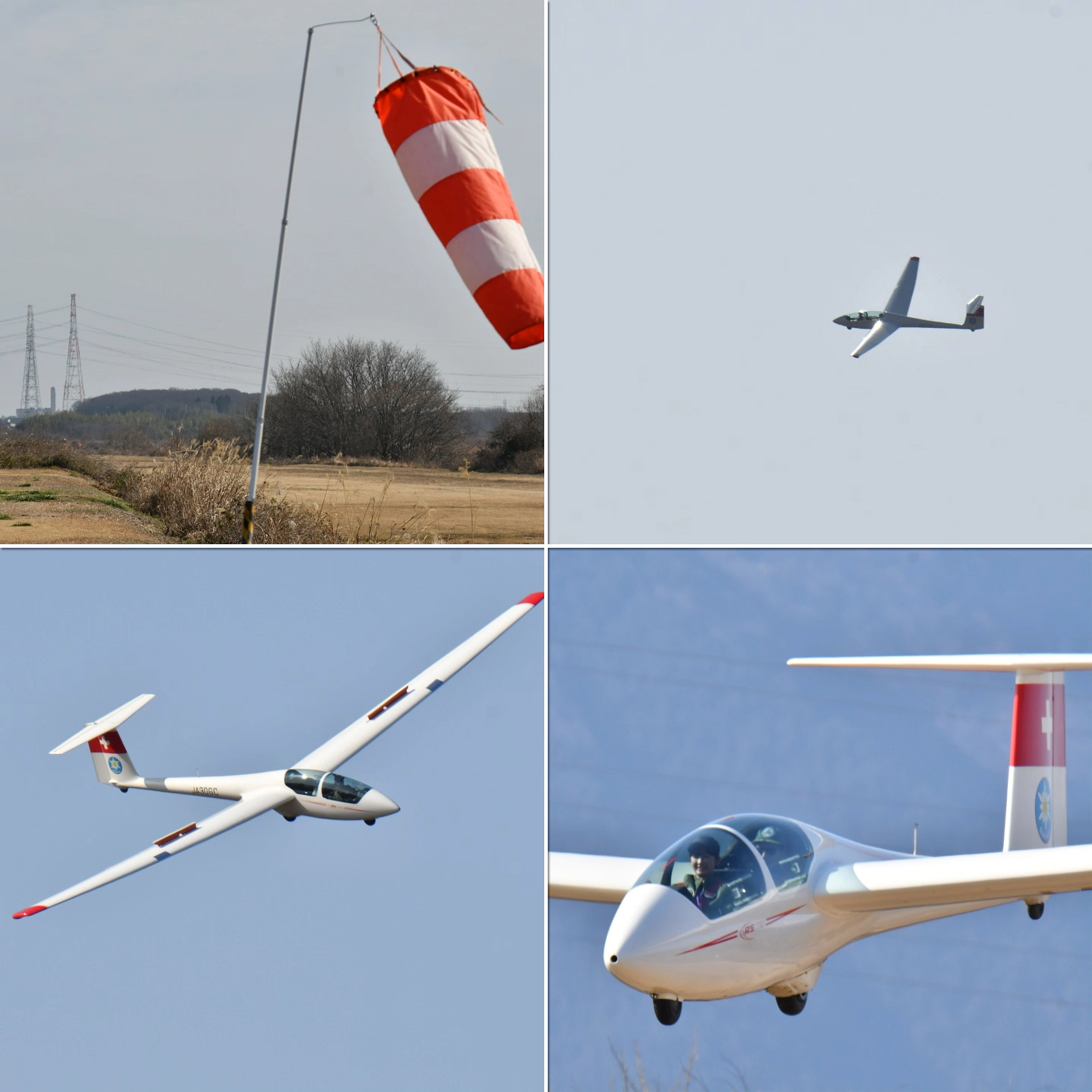 冷え込んだ朝でしたが、静穏で穏やかな中、機体を4機組んで運航を始め、11時頃までは静穏時折弱い背風が吹き、バッタ飛びの運航が続きました。11時頃から南風が安定してきたので、ランウェイチェンジをしました。その後は、南東の弱い風が夕方まで続き、強くはなくトップも700m程度でしたがサーマルがあちらこちらに発生して楽しめた1日でした。