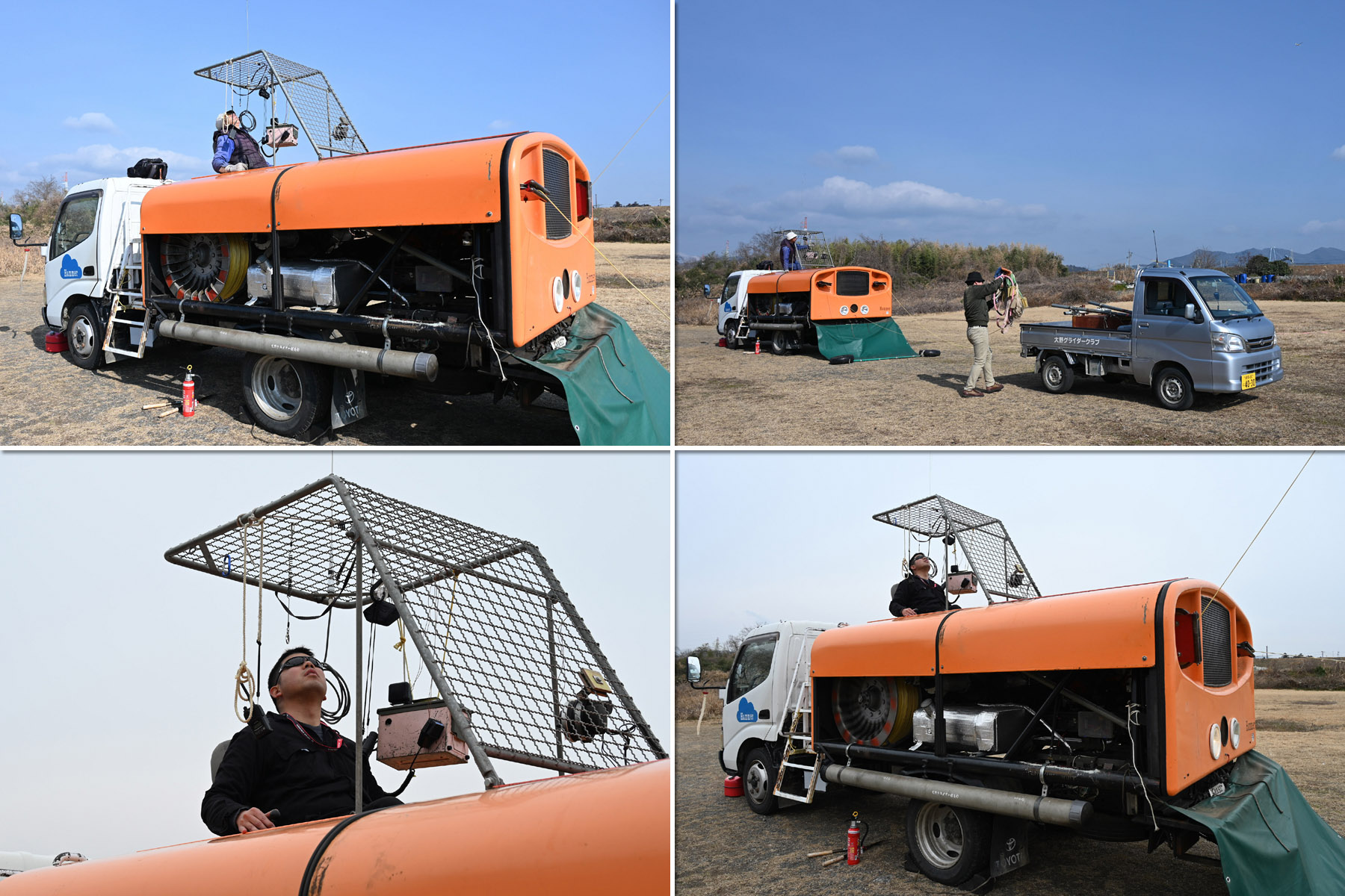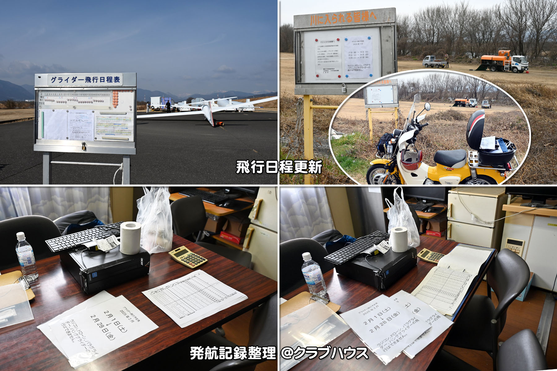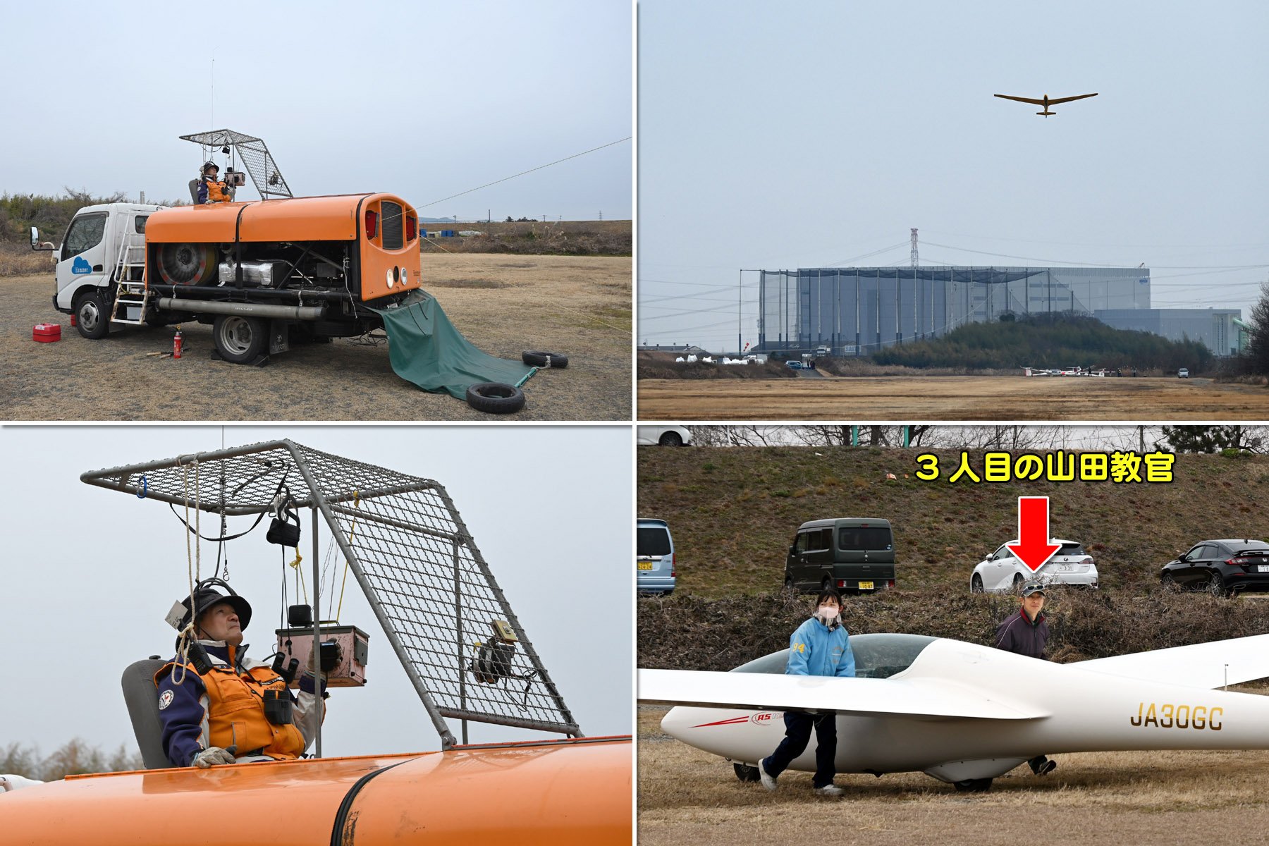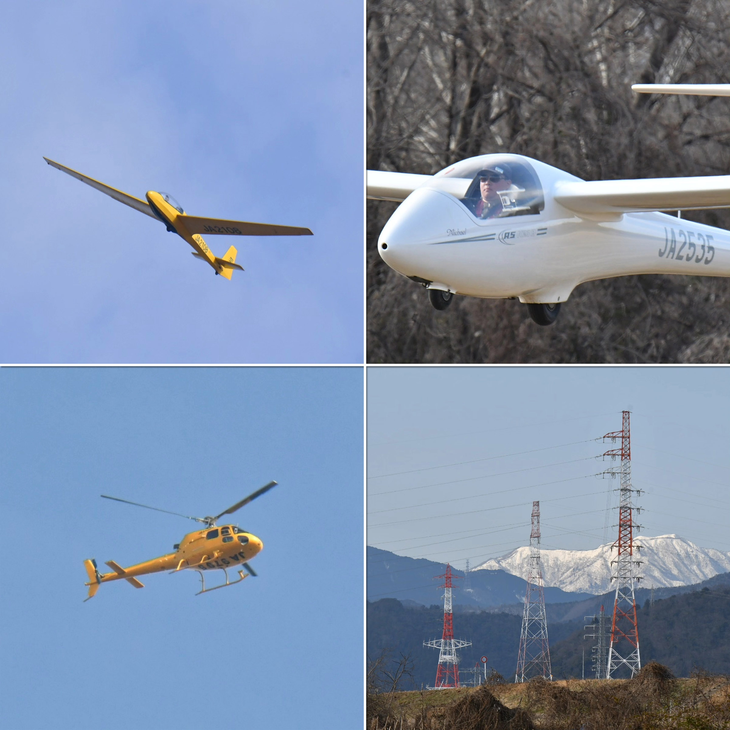 冷え込んだ朝でしたが、静穏で穏やかな中、機体を4機組んで運航を始め、11時頃までは静穏時折弱い背風が吹き、バッタ飛びの運航が続きました。11時頃から南風が安定してきたので、ランウェイチェンジをしました。その後は、南東の弱い風が夕方まで続き、強くはなくトップも700m程度でしたがサーマルがあちらこちらに発生して楽しめた1日でした。