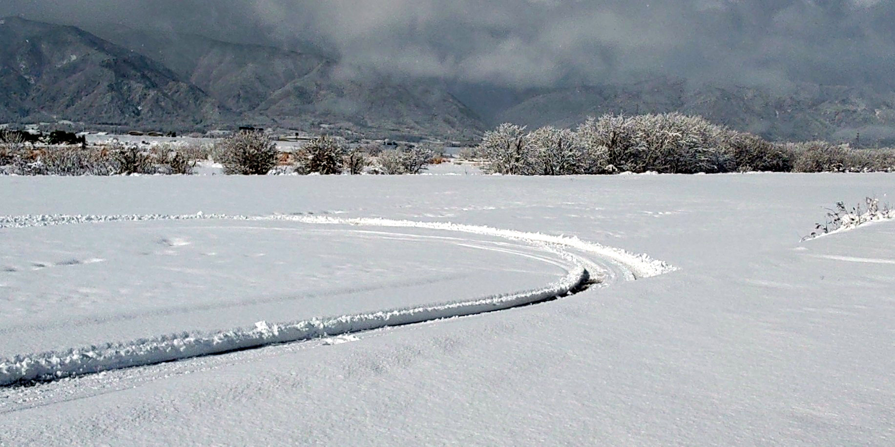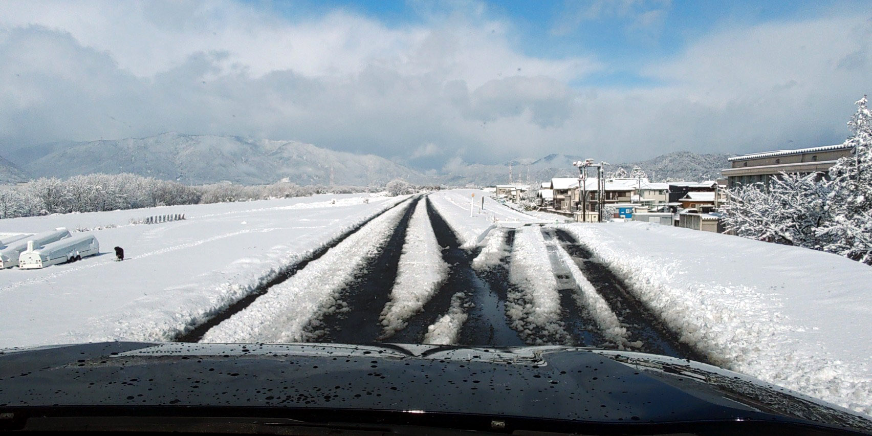 八木宿舎周辺の道路は、滑空場と同じくらいの雪が残っています。