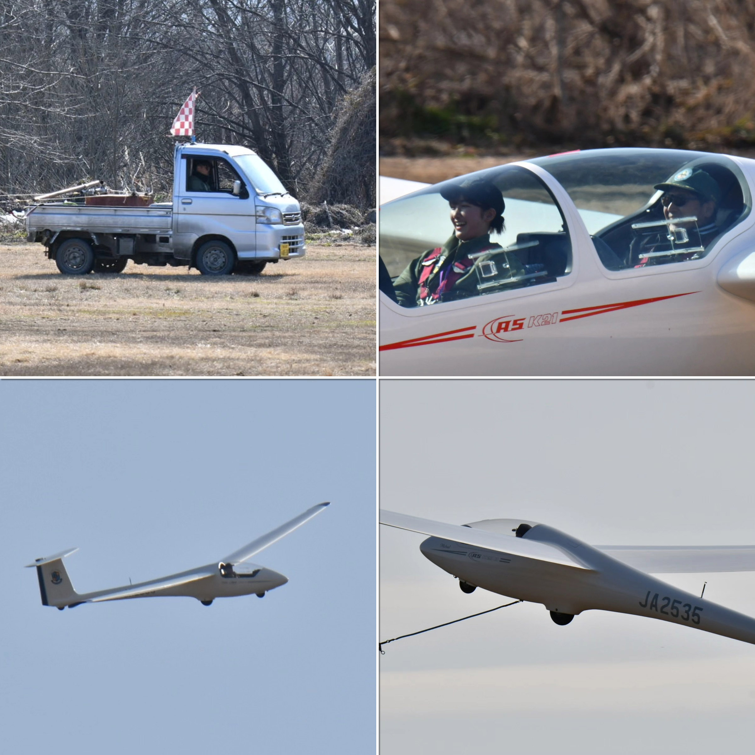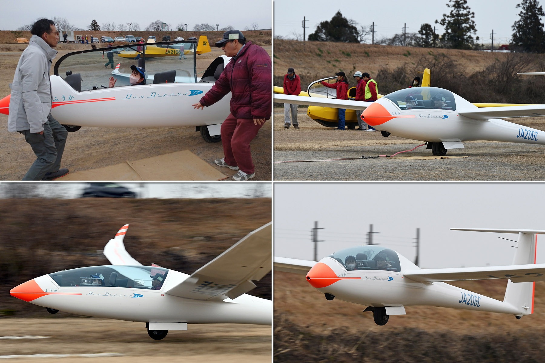 OGC 会員 14名、学生 7名というメンバー構成で、Duo Discus(JA20GC)、JA30GC、JA2108、JA2535、の 4機を組んで、9:21 に発航を開始しました。
