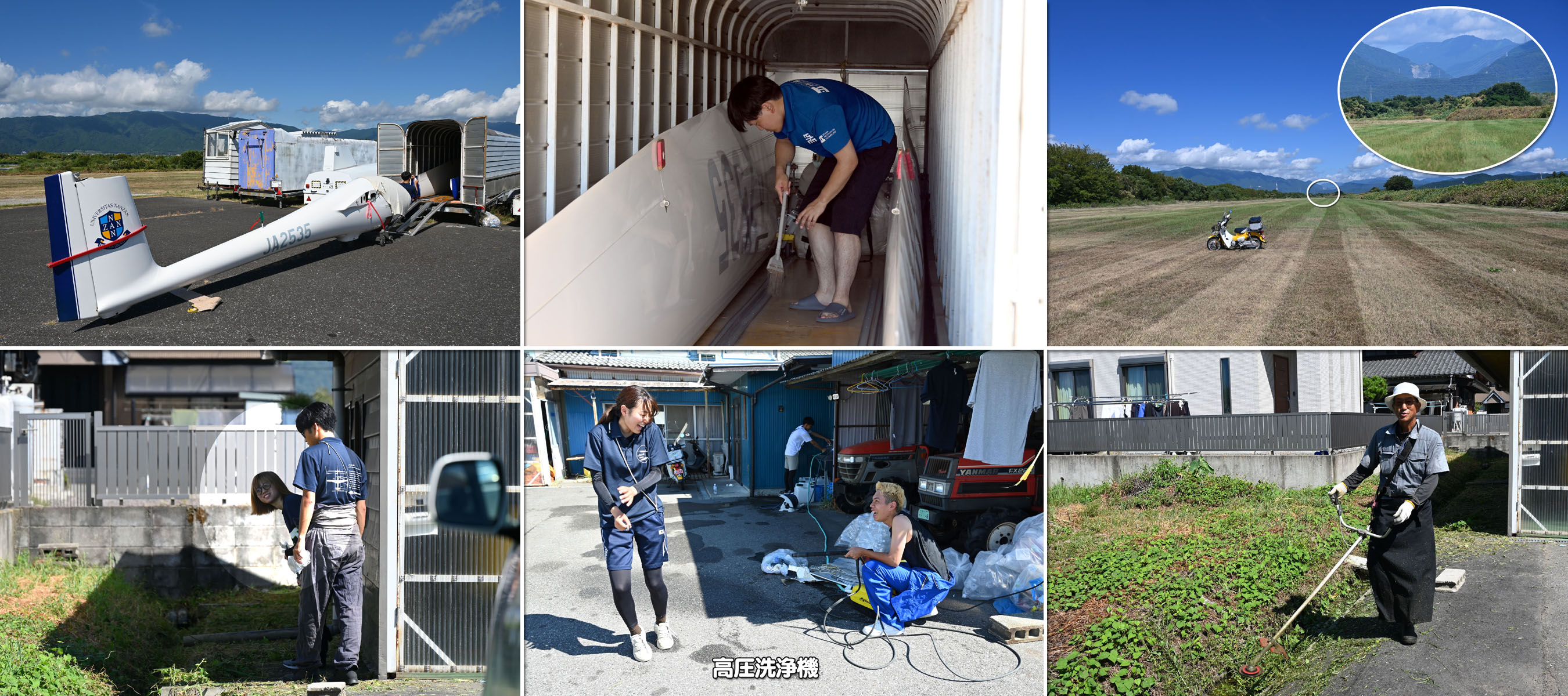 滑空場の駐車場では JA2535 の整備やトレーラー内部の清掃が進んでいます。