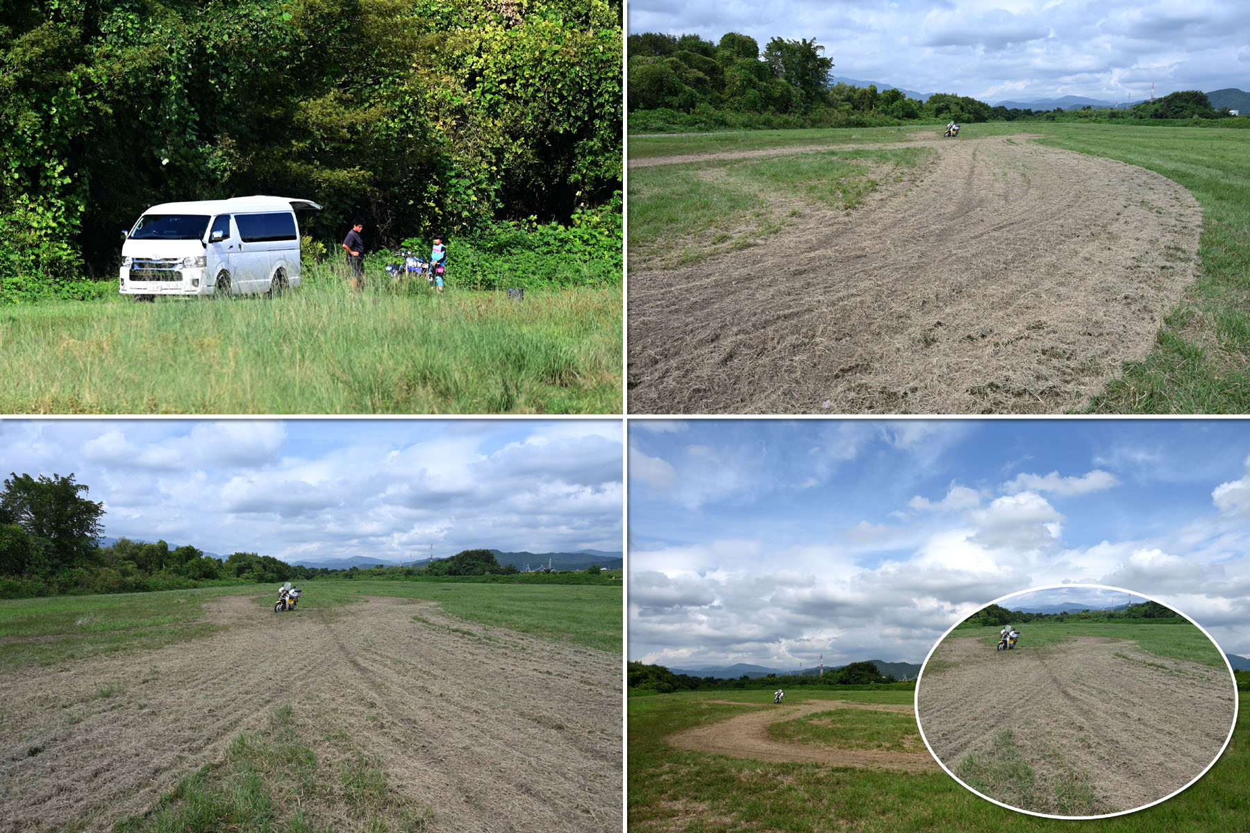 滑空場上流で子供用オフロードバイク 2台が走り回って路面に深い轍(わだち)が出来ていました。引率の父親に厳重注意をし、轍は草刈トラクターで平らに直しておきました。