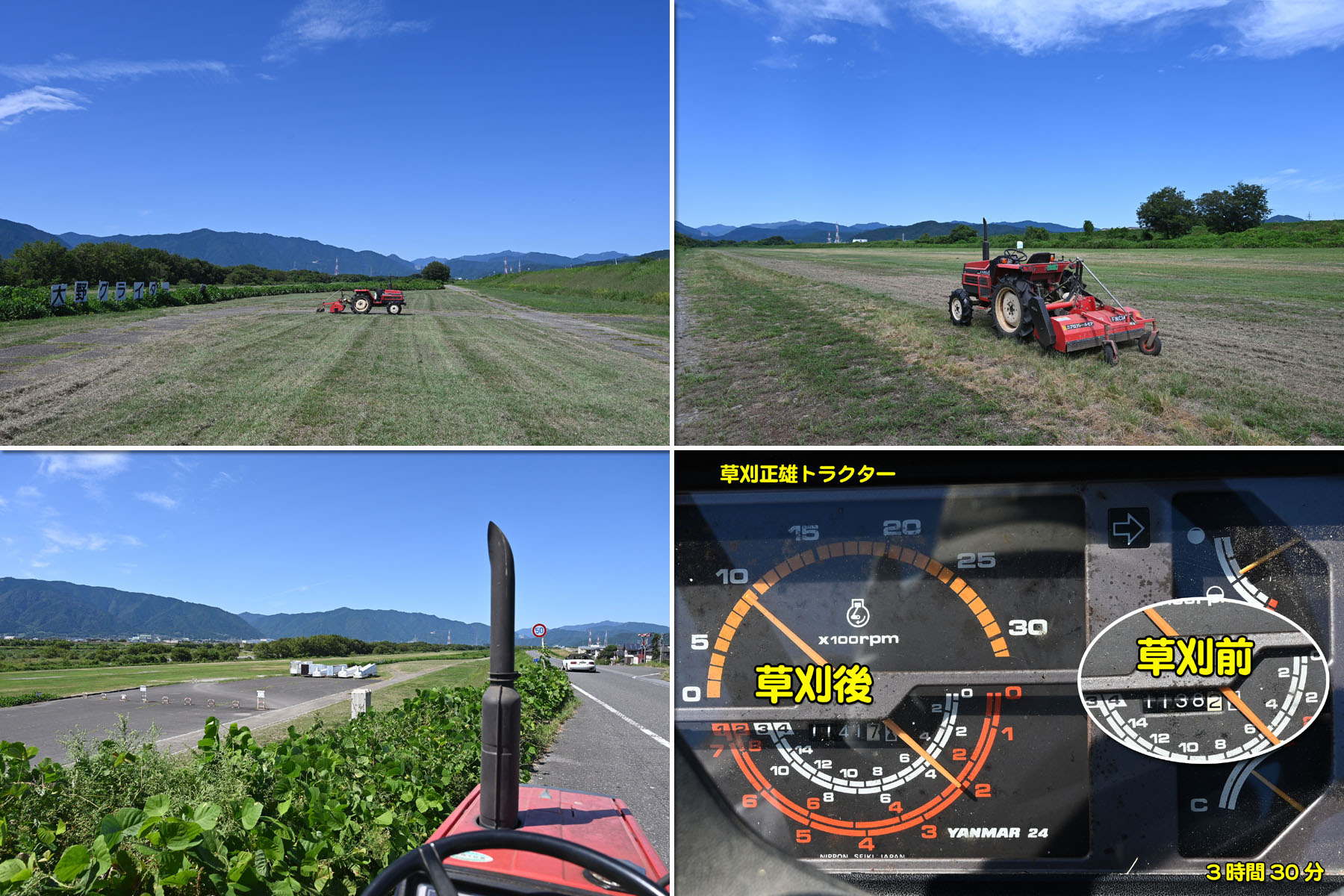 滑走路中流の草が伸びてきたけれど、今日の草刈は宿舎の駐車場周りを優先しました。