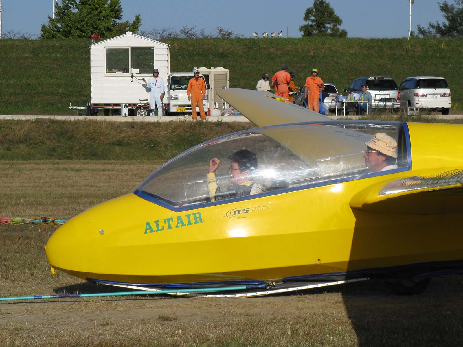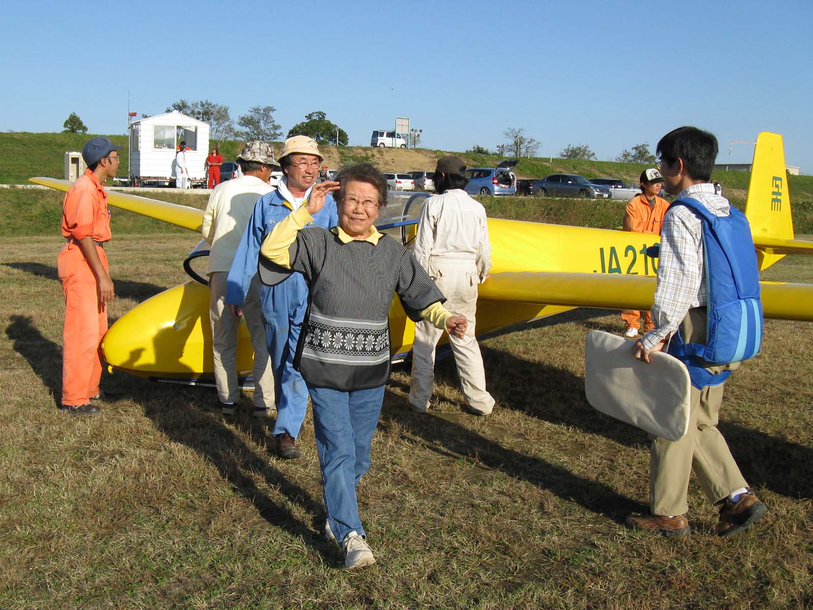 071028 体験搭乗_01 名古屋の82歳のおばあちゃんが揖斐川町へ食事に来られ、グライダーを見つけて冥土の土産にと体験搭乗されました。