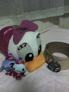 画像ゎGetしたデイジーのクッションとハロウィンのスティッチ◆だいやまーく横にぁるのが彼が買ってくれたピースマークのベルトです(^ー^)ノ