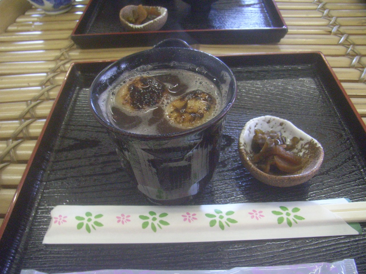 お汁粉全員の注文は、もちろん「お汁粉」(315円)です。ここの「お汁粉」はお餅ではなく焼いたお団子が2個入っています。お汁粉を食べて、暫しマッタリ。ここで、「コメ・スタ」に予約の電話を入れます。平日でも混んでいるのに、日曜日なので予約は必須です。