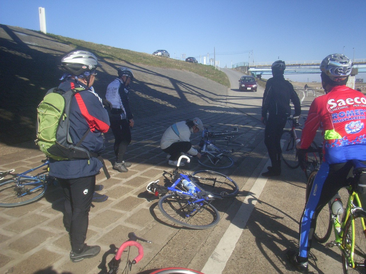 寅さん公園に9:00集合ですが遅刻しないように8時半に家を出て、国道14号で市川橋から江戸川CRに入ります。アメダスでは、弱い北風のはずですが実際に走ってみると、結構それなりに吹いています。10分前に寅さん公園に到着。間もなくftkentさんと潮こんぶさんもやってきて、すぐにスタートです。