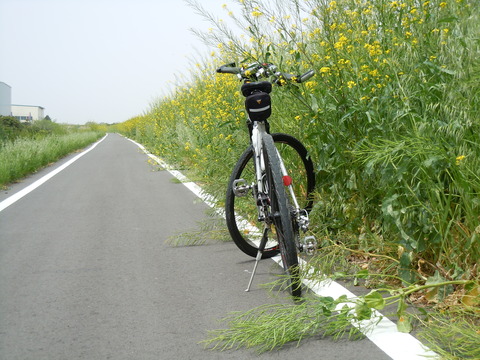 入間川サイクリングロードに入ると予想より風が強いので少しへこたれるが、周りの菜の花に励まされながら終点狭山に向かう。