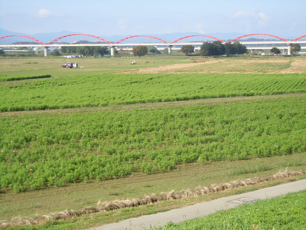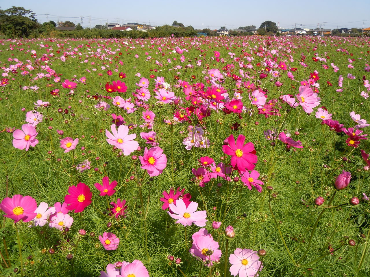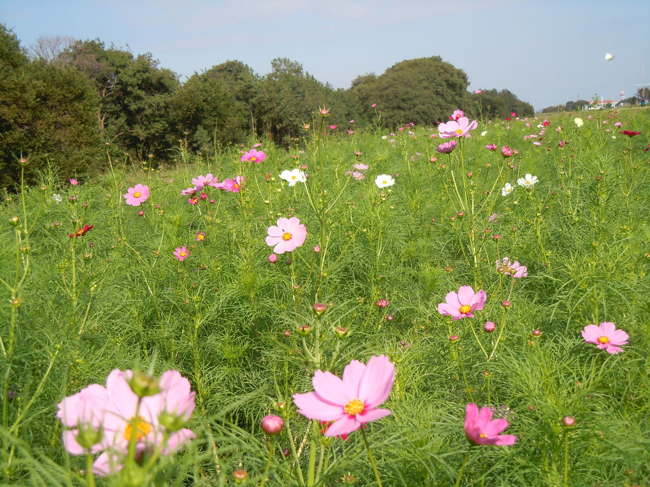 例年コスモス祭りが行われている吹上コスモスアリーナ付近はやっと花が咲き始めたばかり(写真をクイックすると大きくなります)