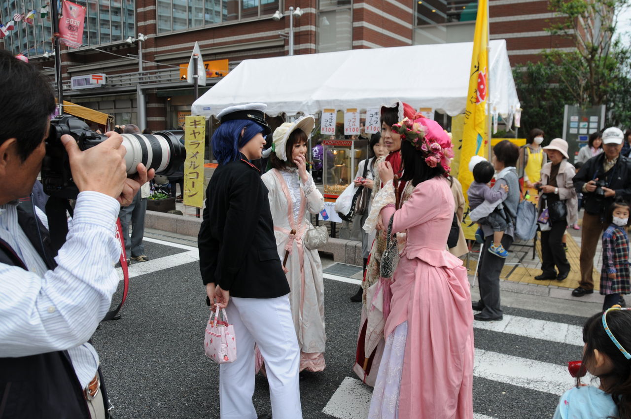 仮装した人達が立ち止るとすぐにカメラマンの餌食に