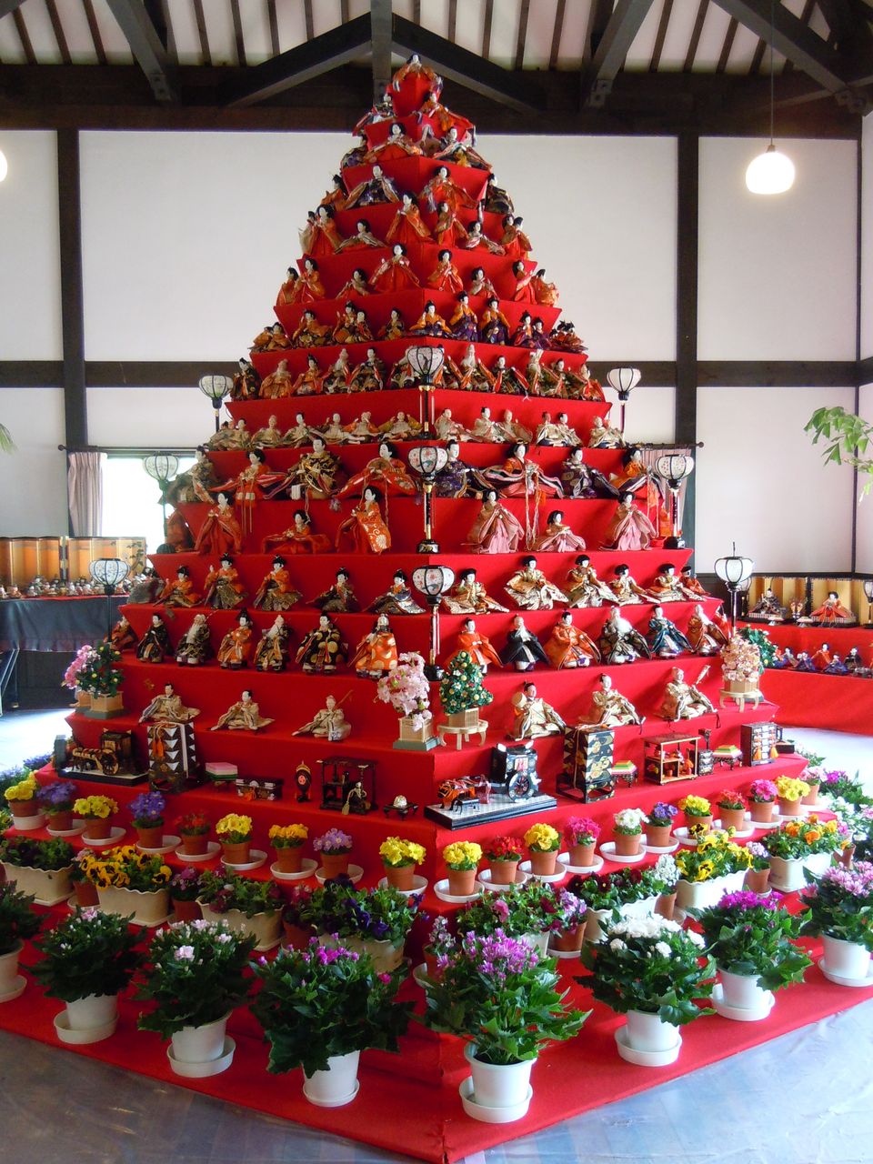 目的地の花久の里に入るとすぐDSCN1753に鴻巣市役所にあるピラミッド型のミニュチュア版的なひな飾りが