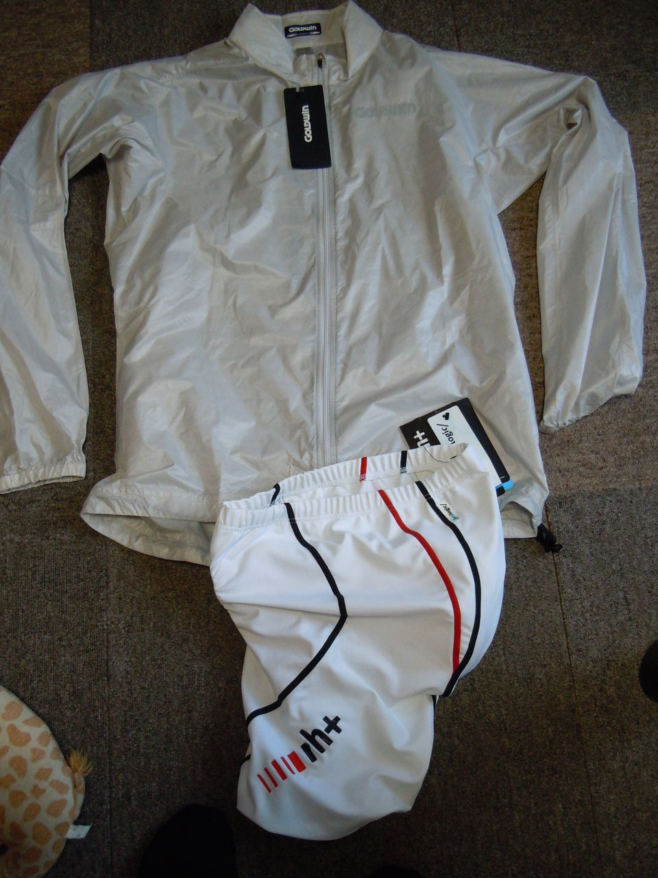 特に買う予定がなかったのですがあまりの安さにウェアを購入。写真の品定価ではウィンドブレーカーとパンツで2万円以上ですが本当のビックリ価格で7000円弱。