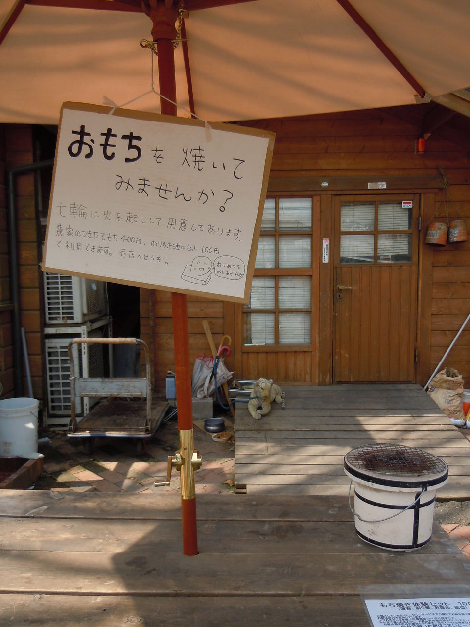 週末限定で、農家のつきたてのお餅を焼いて食べられるようにしてありました。