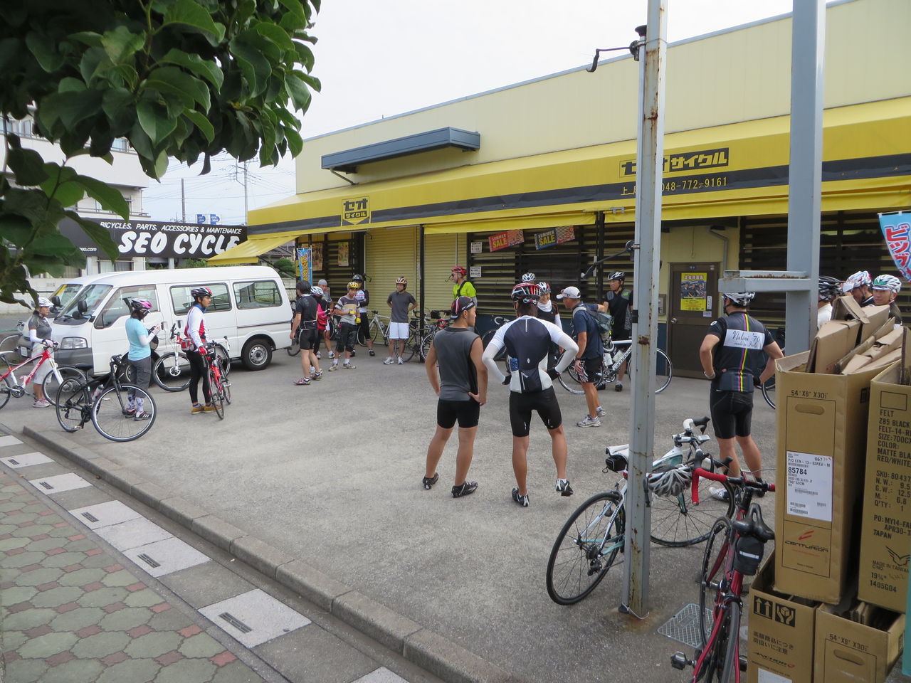 今回の参加者は本当にまだ自転車を始めたばかりの方も含め12名、ビギナー班を担当するお店の方から走行前の自転車の簡単な点検方法、続いてサイクリングする際の最低限必要な持ち物、そしてサイクリング中の手信号を含めた注意事項の説明を受けた後出発