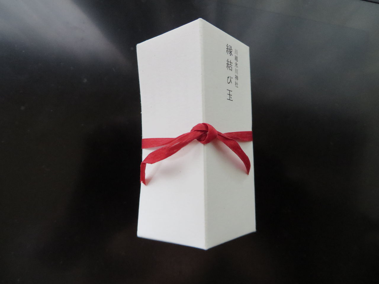 不器用な私は作るのに四苦八苦しましたが神主さんの優しいご指導の何とか写真のような入れ物が完成し中に縁結び玉を入れ持ち帰ることができました