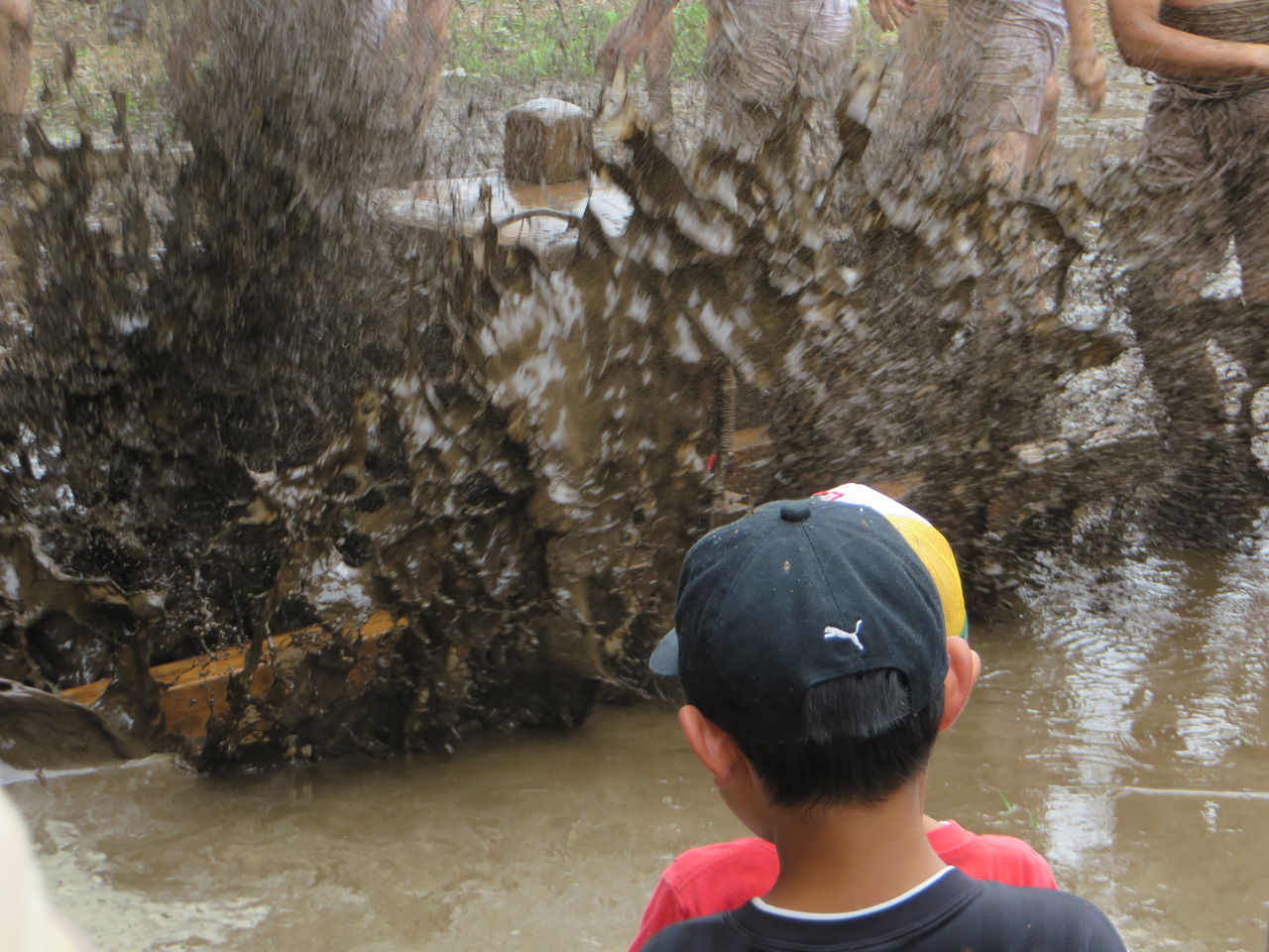 祭りの名前はどろいんきょ祭りと言い神輿を泥の中でころがし豊年豊作と悪疫退散を願うお祭り。