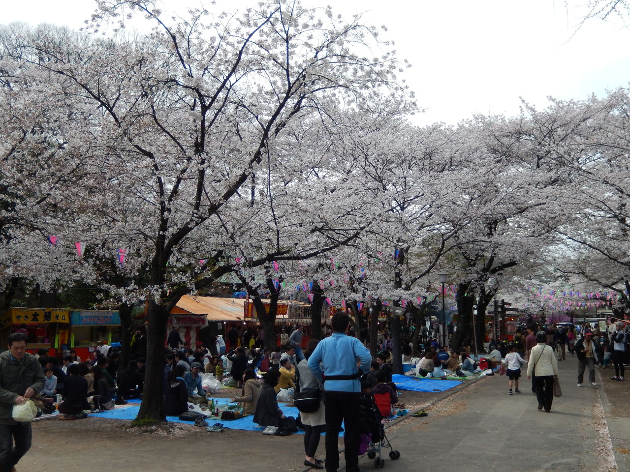 桜の花の下では昼を過ぎたばかりだけど宴会開始