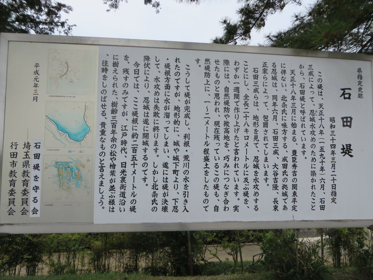 すぐ脇を忍川が流れているので多分この下が石田堤なのだろうが勉強不足でなので良く判らない、ただ遠くから見ると堤のように見えた