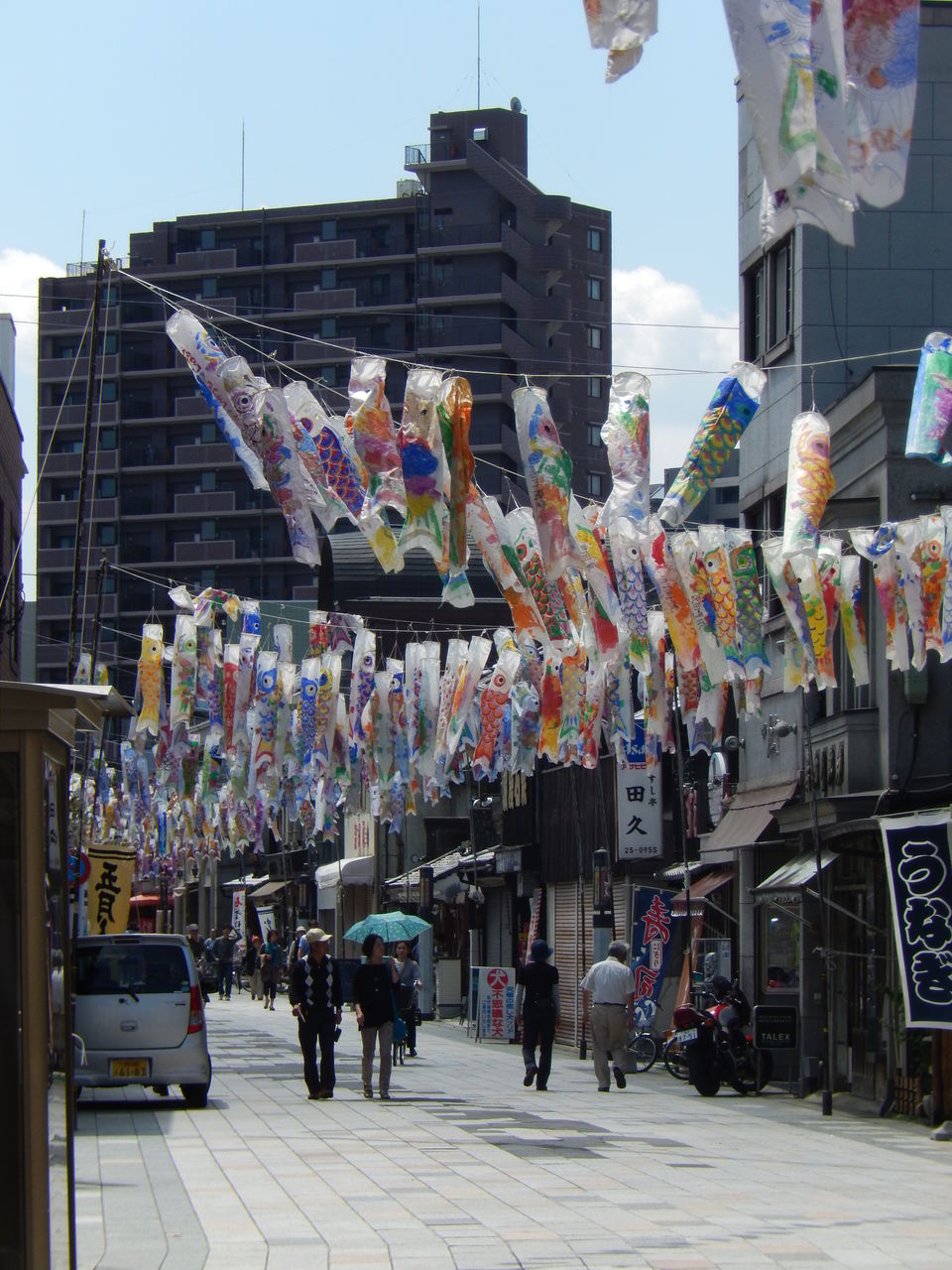 大正ロマン通りではこいのぼりは多いが人は少ない