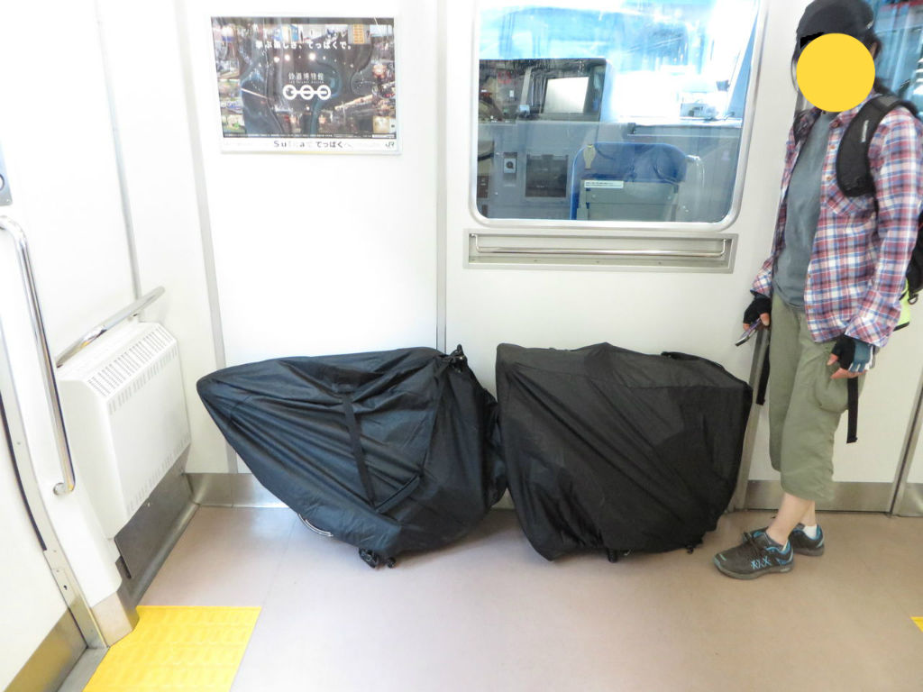 平日の丁度お昼頃は車内はガラガラで周りの皆様の協力も有り無事輪行練習終了