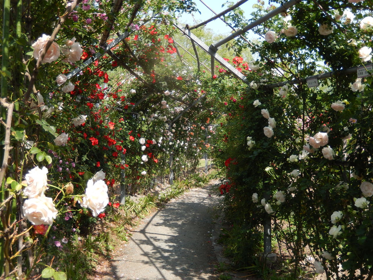 ここの「バラの小路」は日本一長いバラのトンネルとして認定されているのですがあまり知られていないので人出も少なくのんびり見る事が出来ます