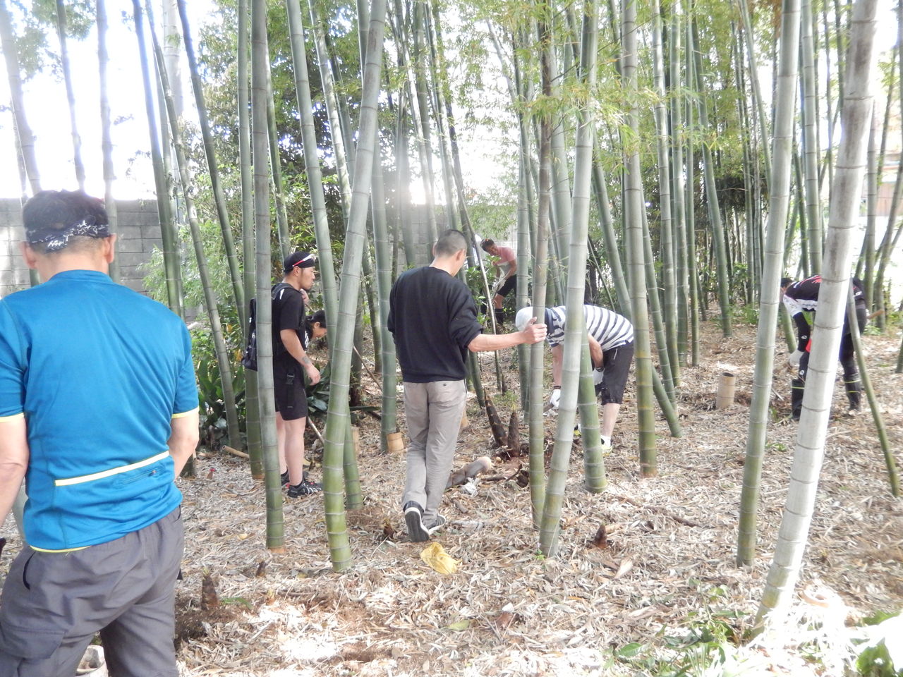 竹林の中にサイクルジャージの方が多数、少し異様な光景ですが皆さん楽しそうにたけのこを掘っておりました
