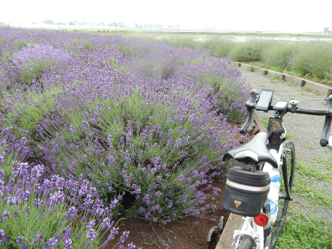 ラベンダー畑で小休止した後目的地の権現堂へ向かうが平日だと大型車が多く危険な所は何回か歩道を走行したが歩道の凸凹には参りました