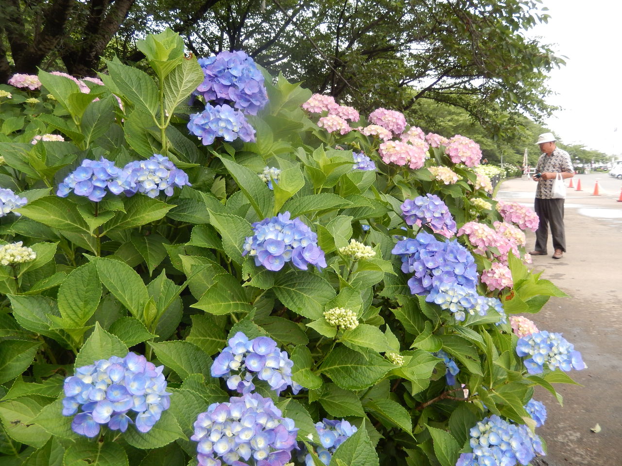 アジサイの開花状況はというと全体的には4分〜5分程度の感じですが、場所によってはかなり開花が進んでいる感じです