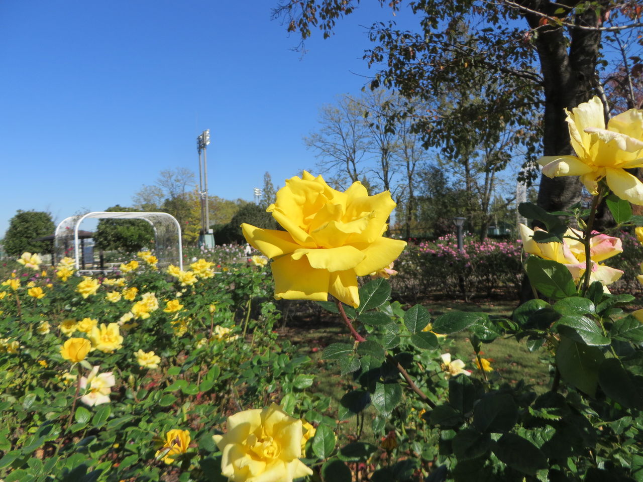 伊奈町では少し回り道をして伊奈町制記念公園のバラ見物。春は有料ですが秋は無料ですゆっくり見物できるのでお得です。