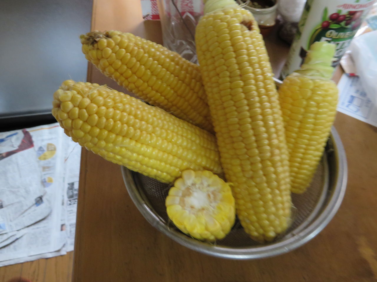 ただその後がうれしい悲鳴。購入したトウモロコシの他におまけのトウモロコシやヤングコーン?も頂きバックに詰める切れず四苦八苦しながら何とか家まで持ち帰りましたが約10kmチョイの道のりが長く感じましたが、家でも生で食べたり、茹でて食べたりして家族皆で美味しく頂きました。採りたてのトウモロコシを分けて下さった農家の方に感謝です。