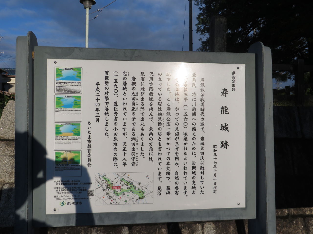 城址跡は大きく、案内板などがありわかり易いイメージだったのでそれ程大きくない公園の中にあるとは想像していなかったので完全に見落としていました。又公園の名前も寿能公園だったので調べていなかったら完全に見過ごしていた所です。