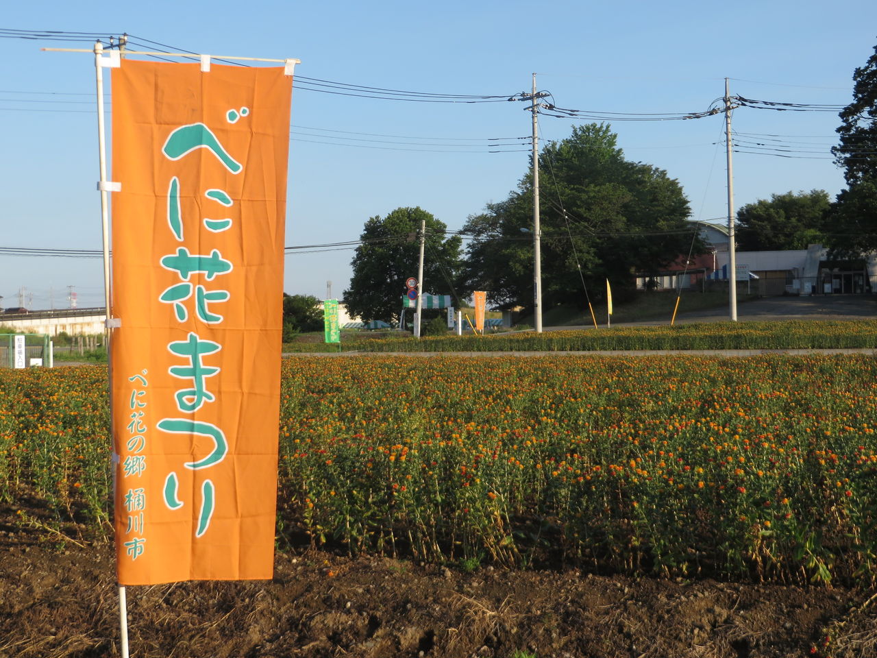 朝ポタは目的が無い限り、上尾周辺を周回していますので今日もいつもと同じ周回コースに向かいますが途中でベニ花畑の看板が目に付いたので取りあえず桶川インター近くのベニ花畑に向かいます。