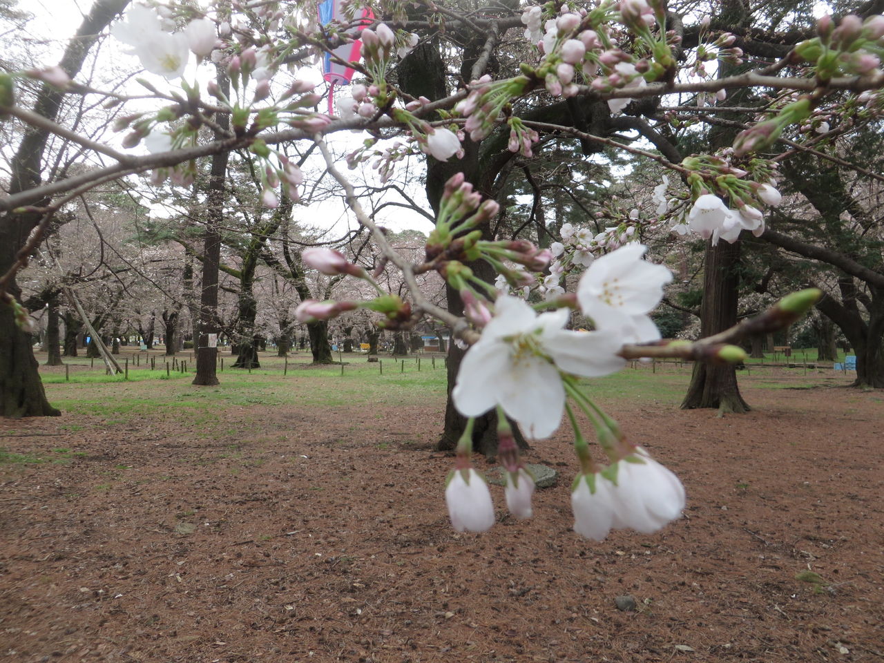大宮公園は19日に開花宣言が出されたがその後気温が下がり、春分の日には雪まで舞ったので開花のスピードはかなり遅く今は1分か2分咲き位。例年だと開花宣言が出てすぐ屋台も出るのだが今年は準備をしている所はまだわずかでした。