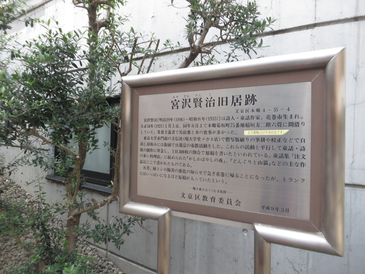 途中に宮沢賢治の旧居跡、確かこの近くにはまだ石川啄木や夏目漱石に関係する物が色々有るはずだが調べていないので今回はパスです。 再度東大の前を通って谷根千へ