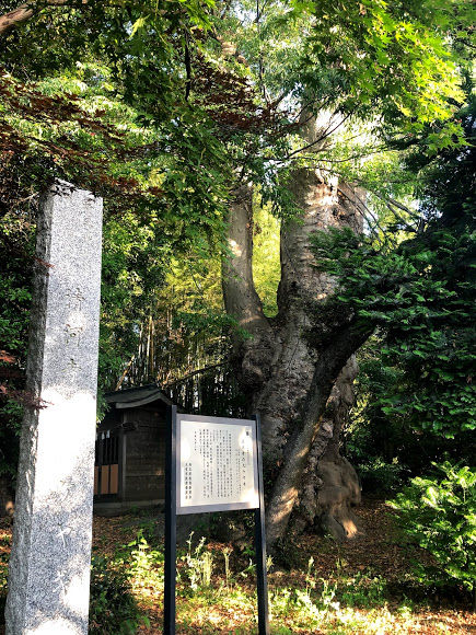 かなり大きい。説明板によると埼玉県の天然記念物に指定され推定樹齢は650年、高さは32m、根の周りの太さは14.3mあるとの事。