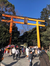 いつもと同じ時間に家を出たのだがいつも止めている駐車場がまだ開いていない?。神社の駐車場に入れようとしたら交通規制で入れず。サッカー場の駐車場は行列。仕方ないので第二公園の駐車場へ行くと殆ど並ばずに駐車することができやっと氷川神社へ。