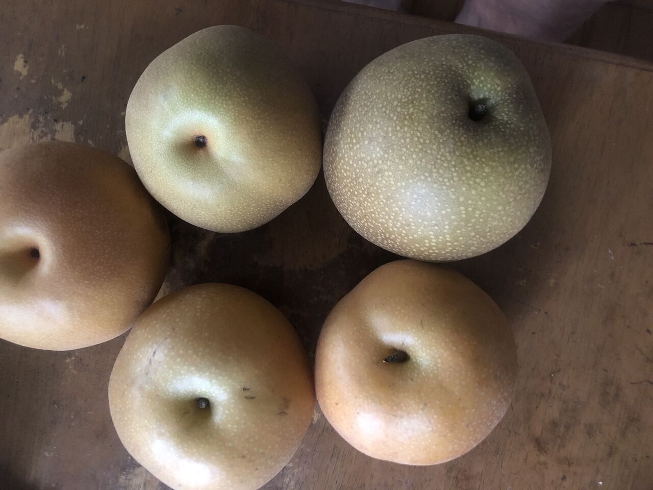 今日の朝ポタの目的は梨。朝ポタで路地売りの買い物はほぼ毎回だが何を買うか決めていくのはほぼ「0」、と言うより朝ポタに出る時間が早いので路地売りをやっているところが少なく、野菜類も当然の事だが旬の物しかないので何を買うかは現物を見てからでないと決められないからだが、今回は昨日豊水が出始めたので購入してきたのだが、偶々孫達が来たのでその豊水をあげてしまったので昨日購入した所で再度豊水を購入するための朝ポタに出かけました。そしていつもの朝ポタコースを回った後梨を購入しようと立ち寄ると 豊水がなく高級な彩玉が そしたら路地売りの家の方来たので豊水は無いのですかと聞いたところ昨日全部売れ、今日はこれから収穫とのこと 仕方ないので帰ろうとしたら屑梨があるから持っていきなと