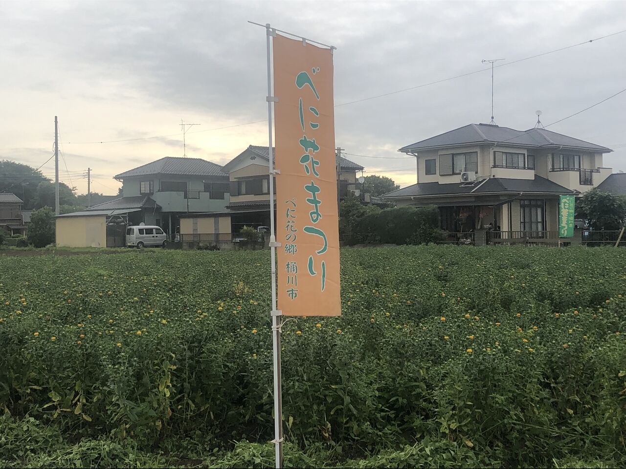 べに花祭りの、のぼりがあったので調べてみたら18日と19日に行われる様です。今年のべに花の見頃はもう少し後かな?