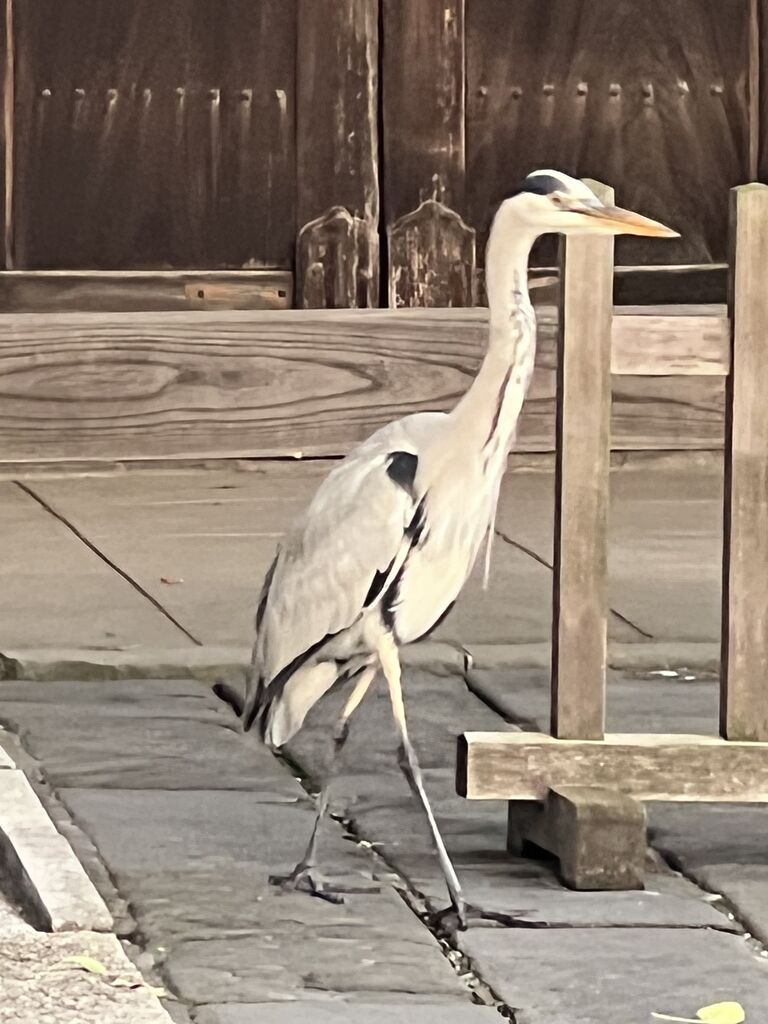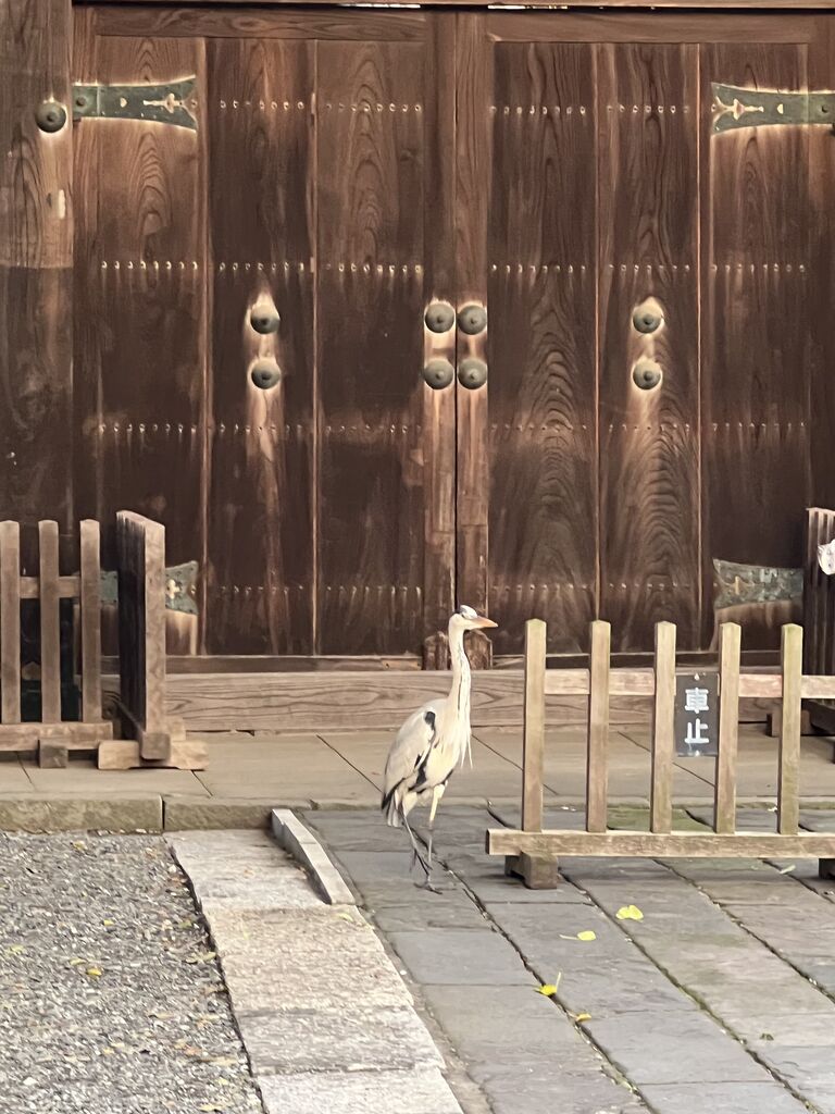 多分アオサギだと思うのですが、普通はこんな街中にはいないので、お祭りでも見て参拝しているのかな(笑)