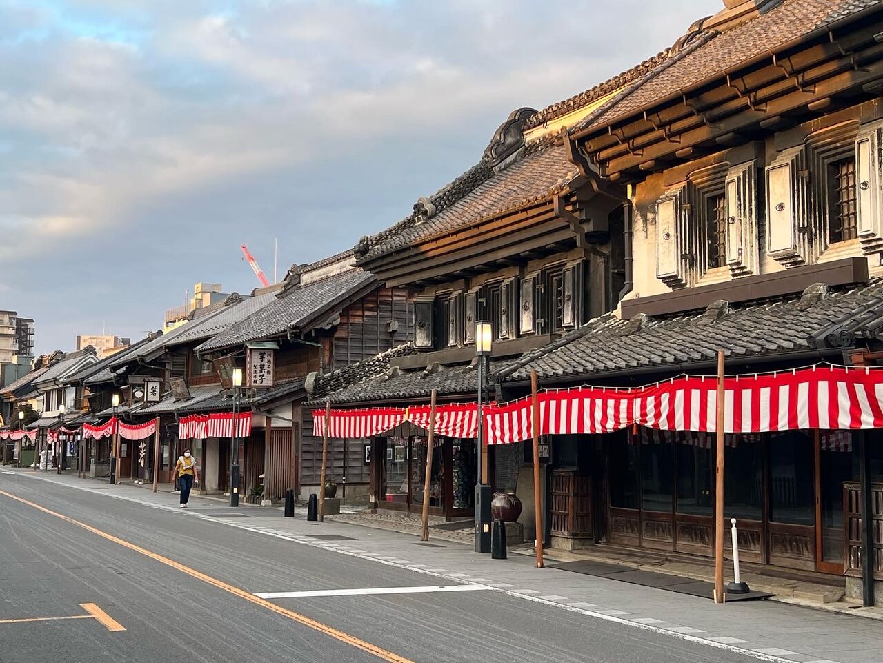 今朝の早朝ポタは川越祭りの様子を見に行ってきました。本当は昼間に市内を山車が巡行している所の方が良いのですが、コロナも終息していないので早朝に雰囲気だけ味わいに。川越の街中は紅白の幕でお祭りの雰囲気一杯