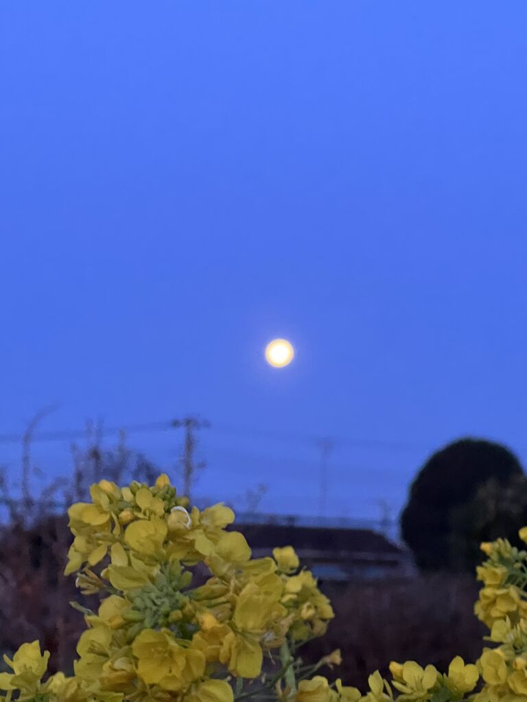 暖かい日が続き朝の寒さも少し和らいで来たので、久しぶりに朝ポタに行ってきました。月がきれいだったので菜の花と一緒に一枚