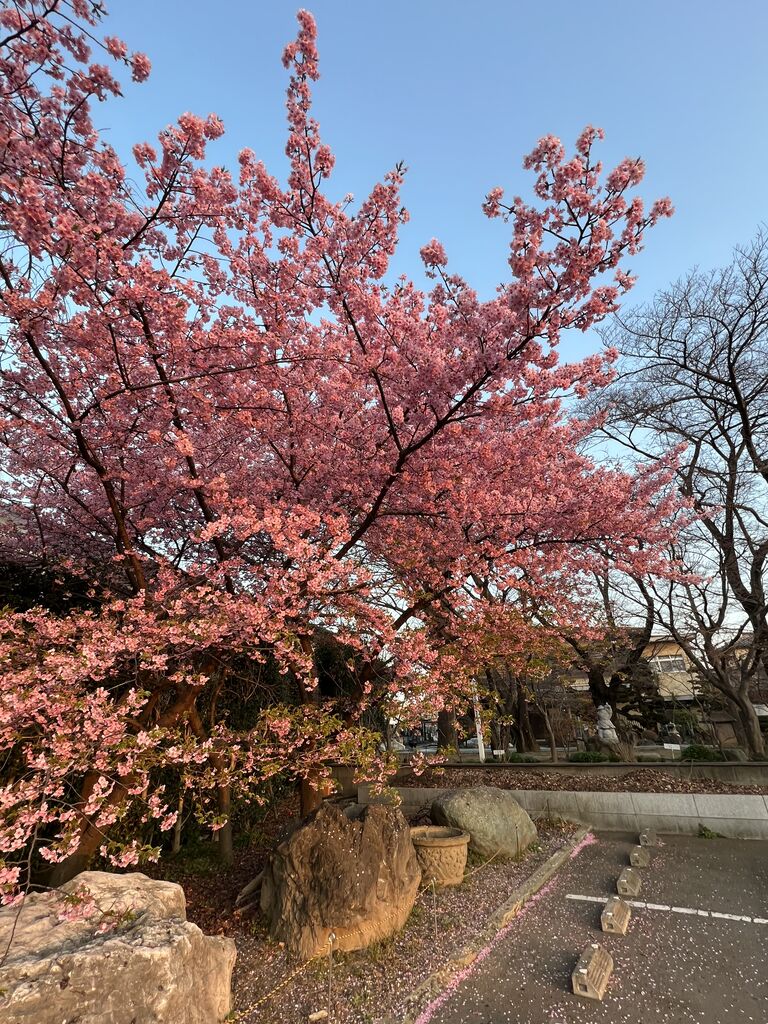 川沿いはまだ蕾が多かったですが駐車場の方は結構咲いていました。 そして駅近くの谷津観音