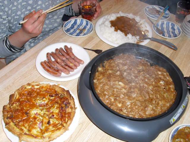 ・友人と自宅でミニカフェをしました。キッシュやもんじゃ焼き、おもち、楽しい会話とテレビ、とても笑いがいっぱいの時間になりました。