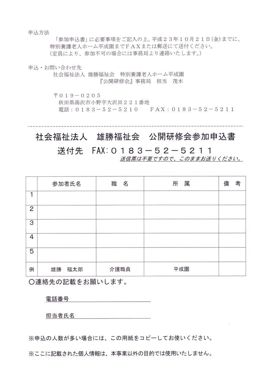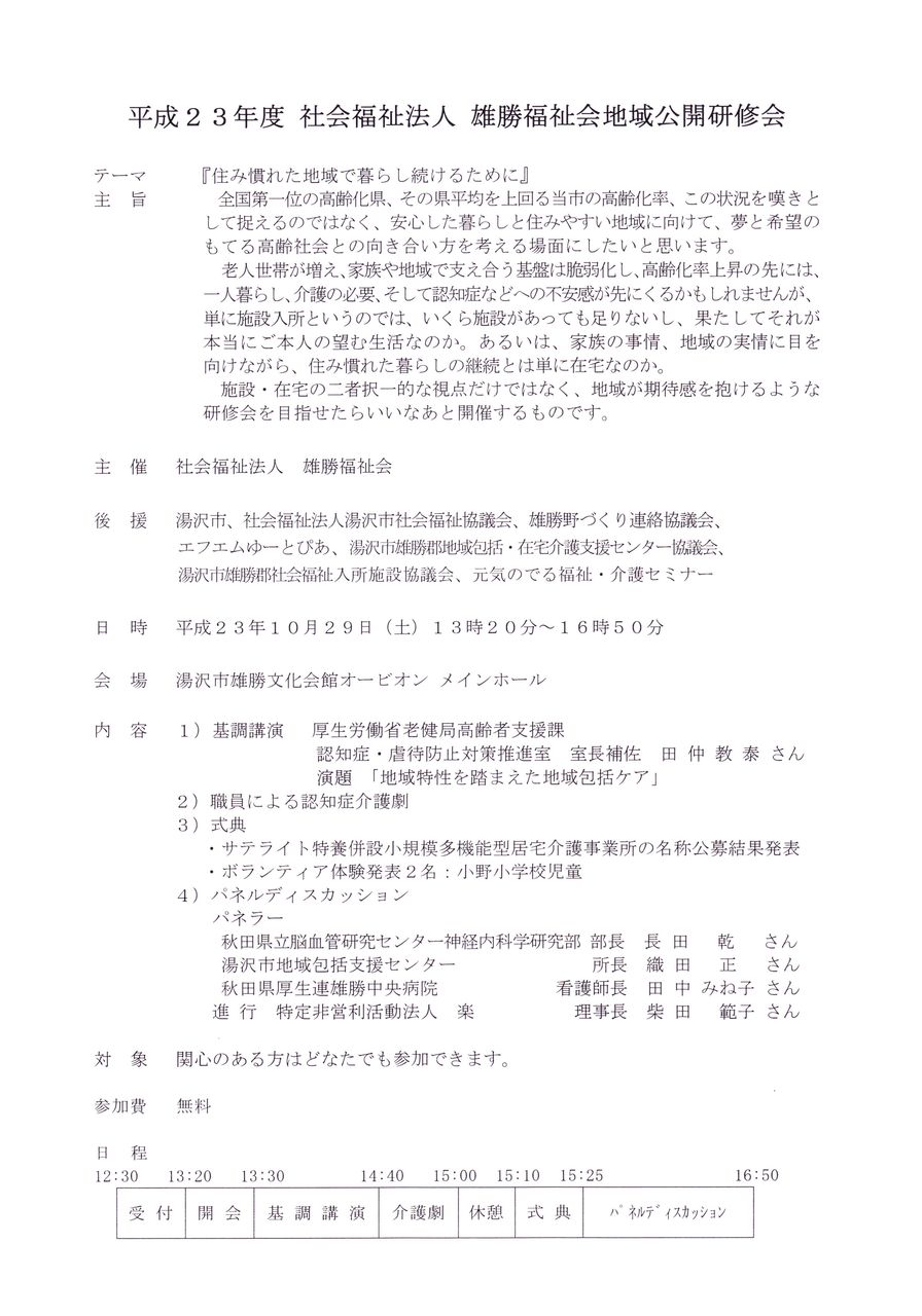 雄勝福祉会地域公開研修会は11月29日(土)午後1時20分から