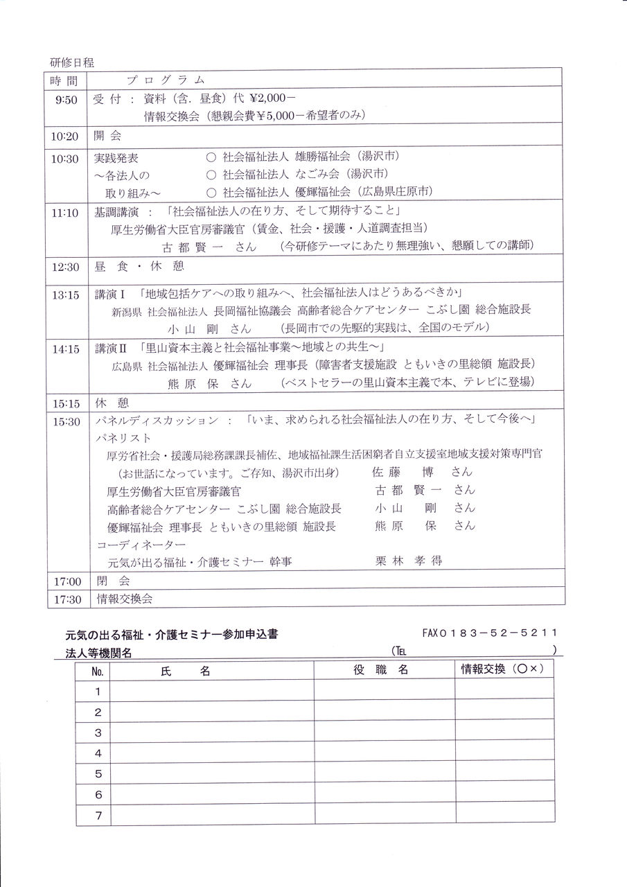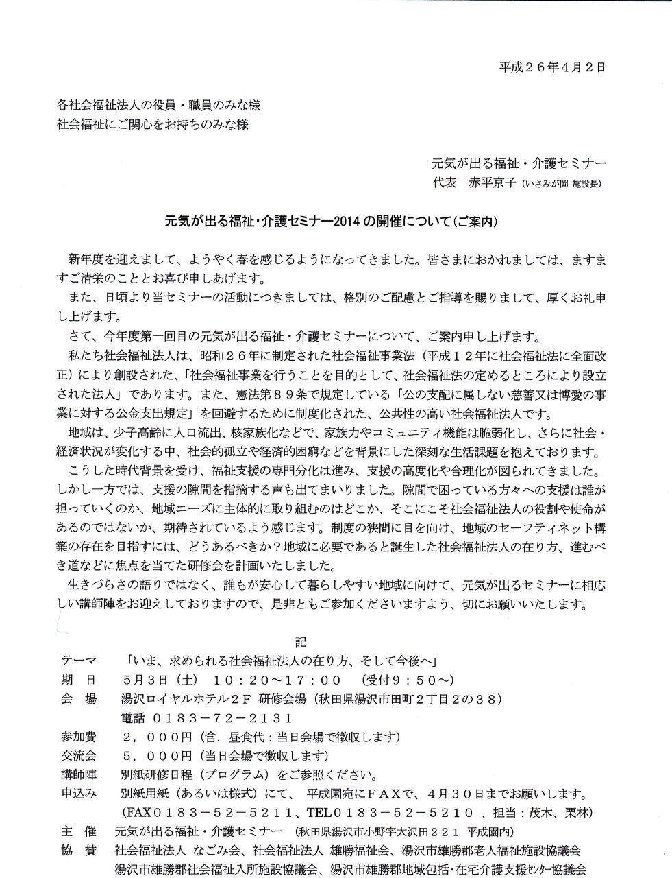 元気セミナー2014.VOL1 元気セミナープログラム・申込書