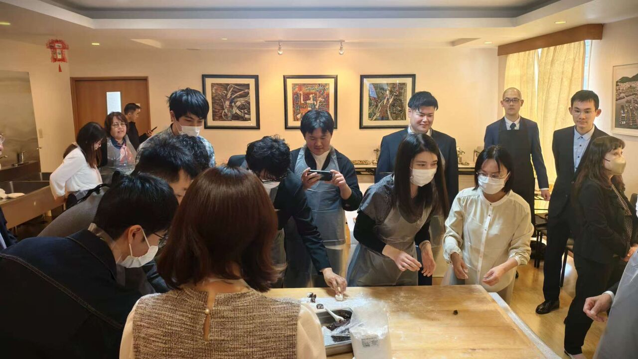 報告会では、主催者として李文斌代理総領事の挨拶の後、各県チームより訪中報告、そして中国伝統のお菓子作りを体験するなど、団員たちは久しぶりの再会を楽しんでいました。